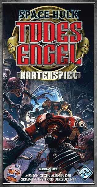 Aufgrund sehr guter Bewertungen, vieler interessanter Video-Reviews, weil man es gut solo spielen kann und eines hervorragenden Preises (15 Euro bei "Kai's Welt der Spiele") habe ich mir mal SPACE HULK: TODESENGEL gekauft. Ein Kartenspiel, das die Erkundung von Space Hulks und den Kampf gegen "Genestealer" (dt. Symbionten) durch ein Space-Marine-Einsatzteam im Sci-Fi-Universum von Warhammer 40.000 zum Thema hat. Neben Spielkarten gibt es auch noch einen sechsseitigen Spezial-Würfel für Proben und einige Spielmarker.